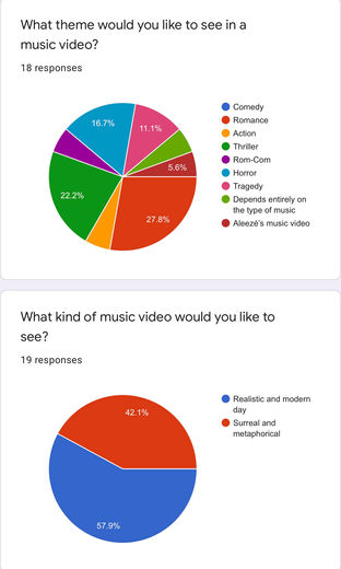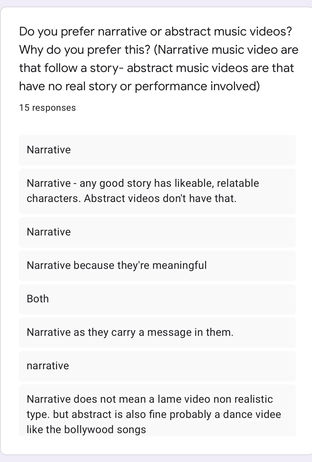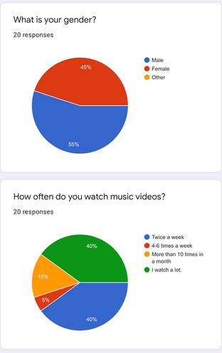 After absorbing information of what a music video is, i decided to make an online questionnaire for the preliminary task. My team and i distributed it online to our family and friends.